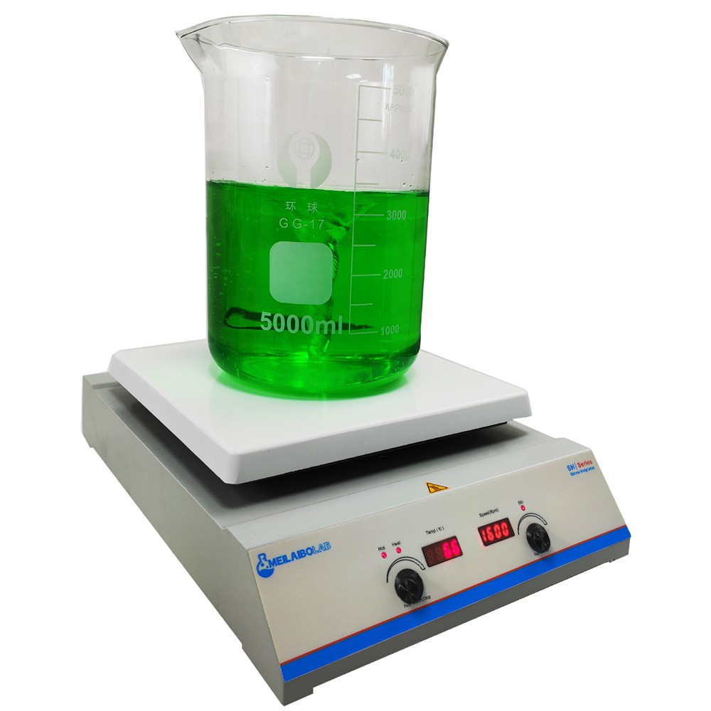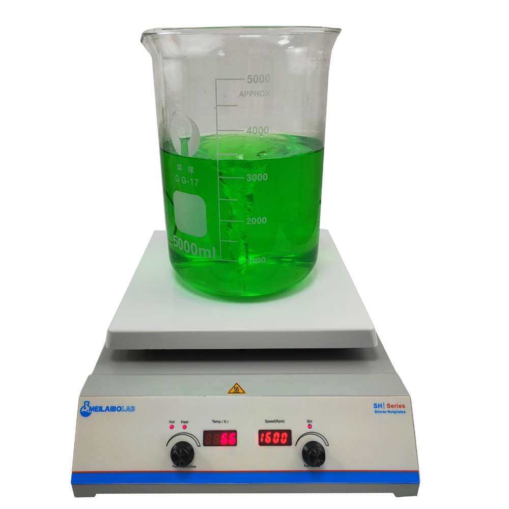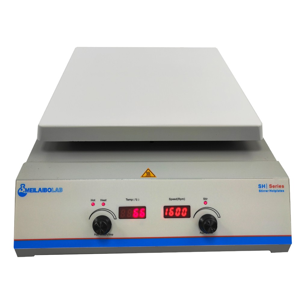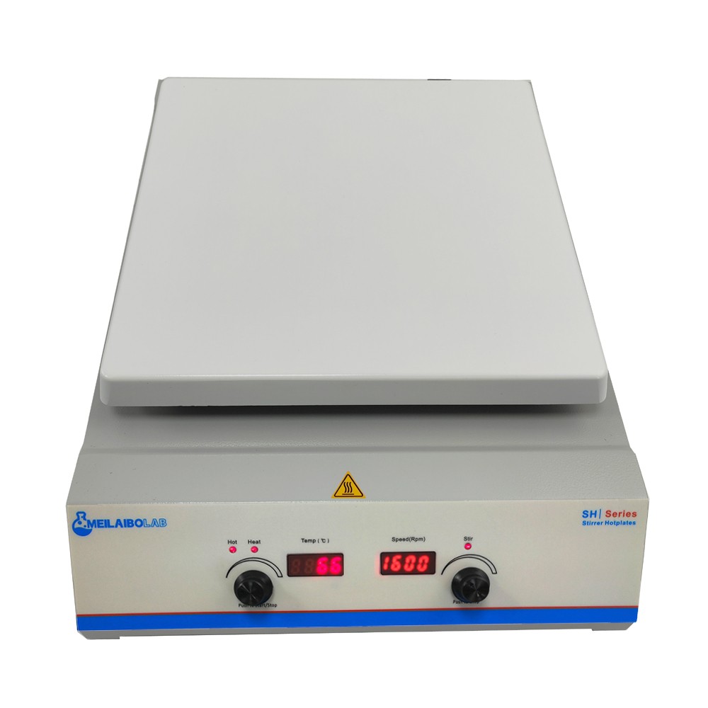 laboratory hotplate stirrer equipped with 10-inch ceramic coated hotplates, ensuring optimal performance, enhanced safety, and maximum reliability for everyday laboratory.
