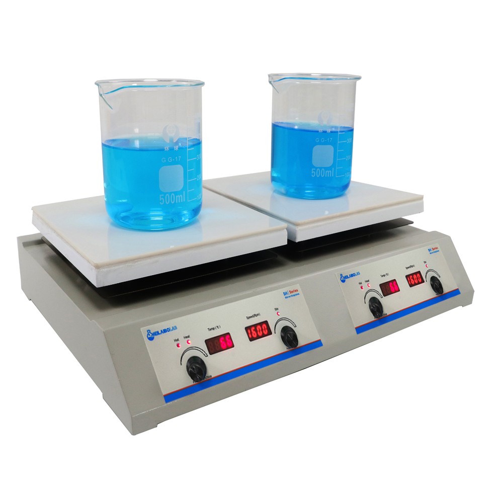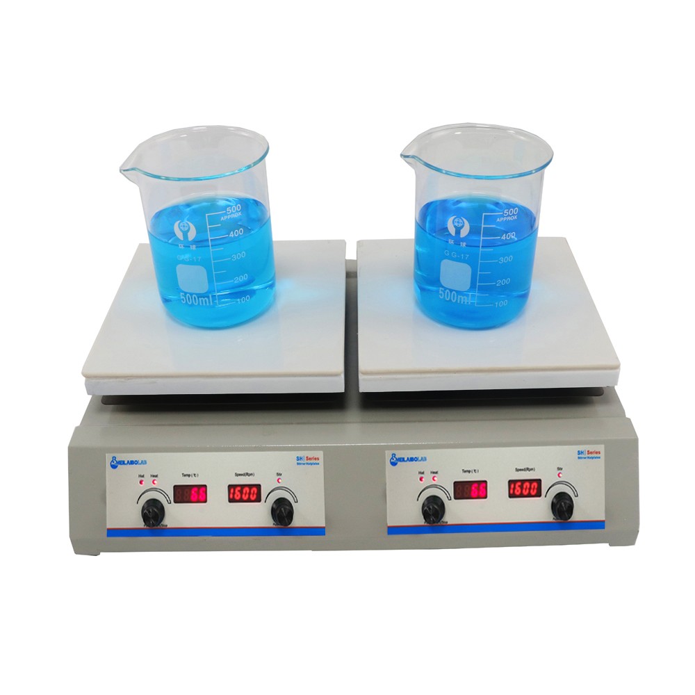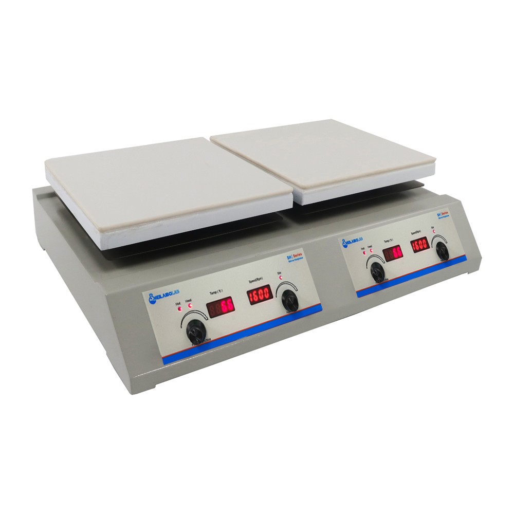 laboratory hotplate stirrer equipped with 2pcs 7-inch ceramic hotplates, ensuring optimal performance, enhanced safety, and maximum reliability for everyday laboratory.