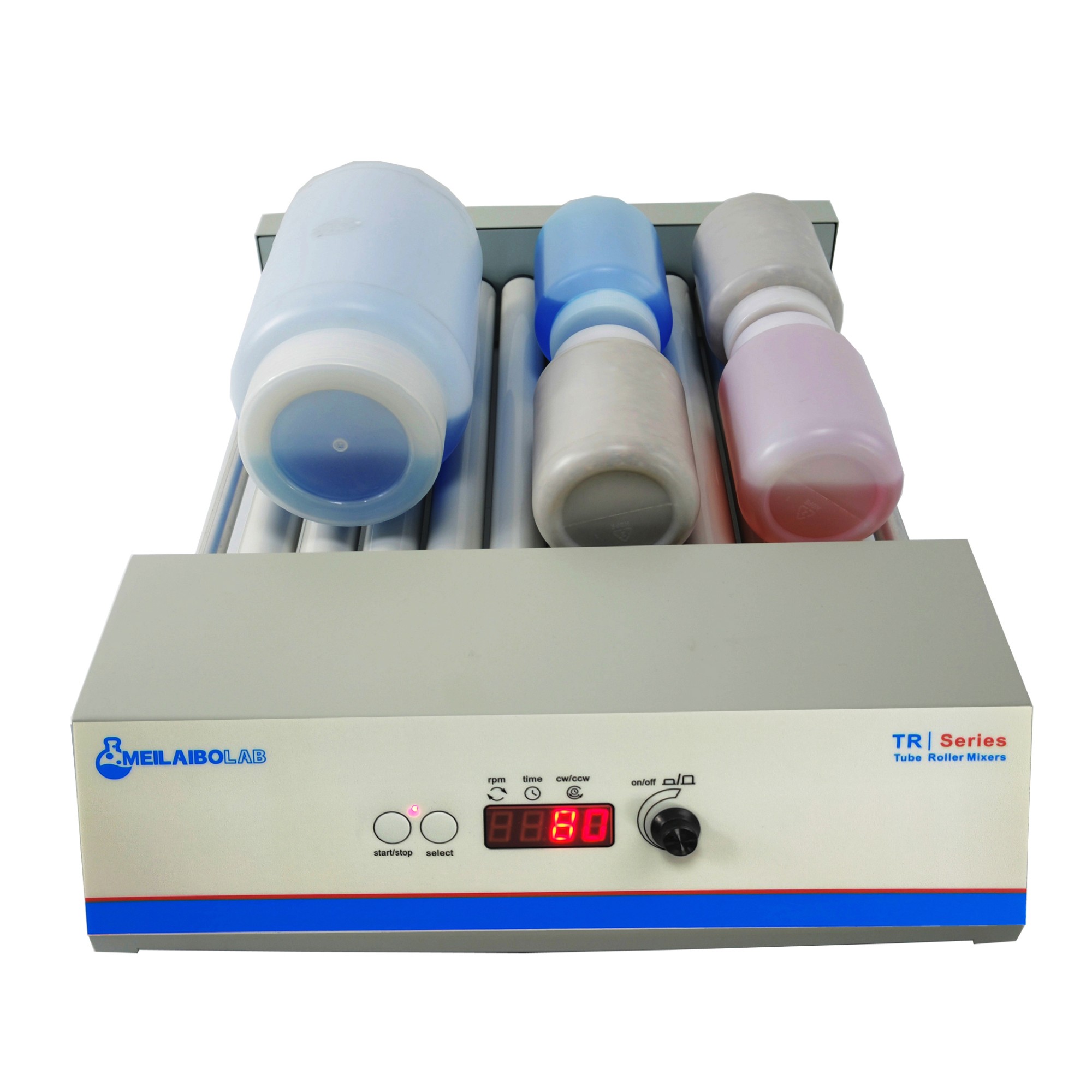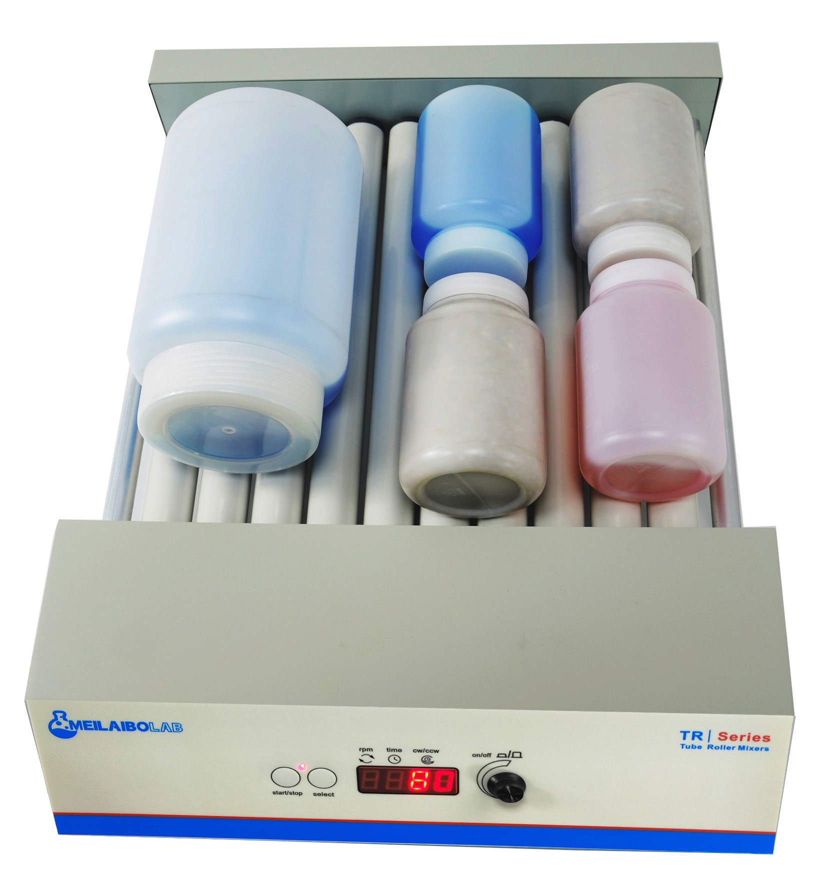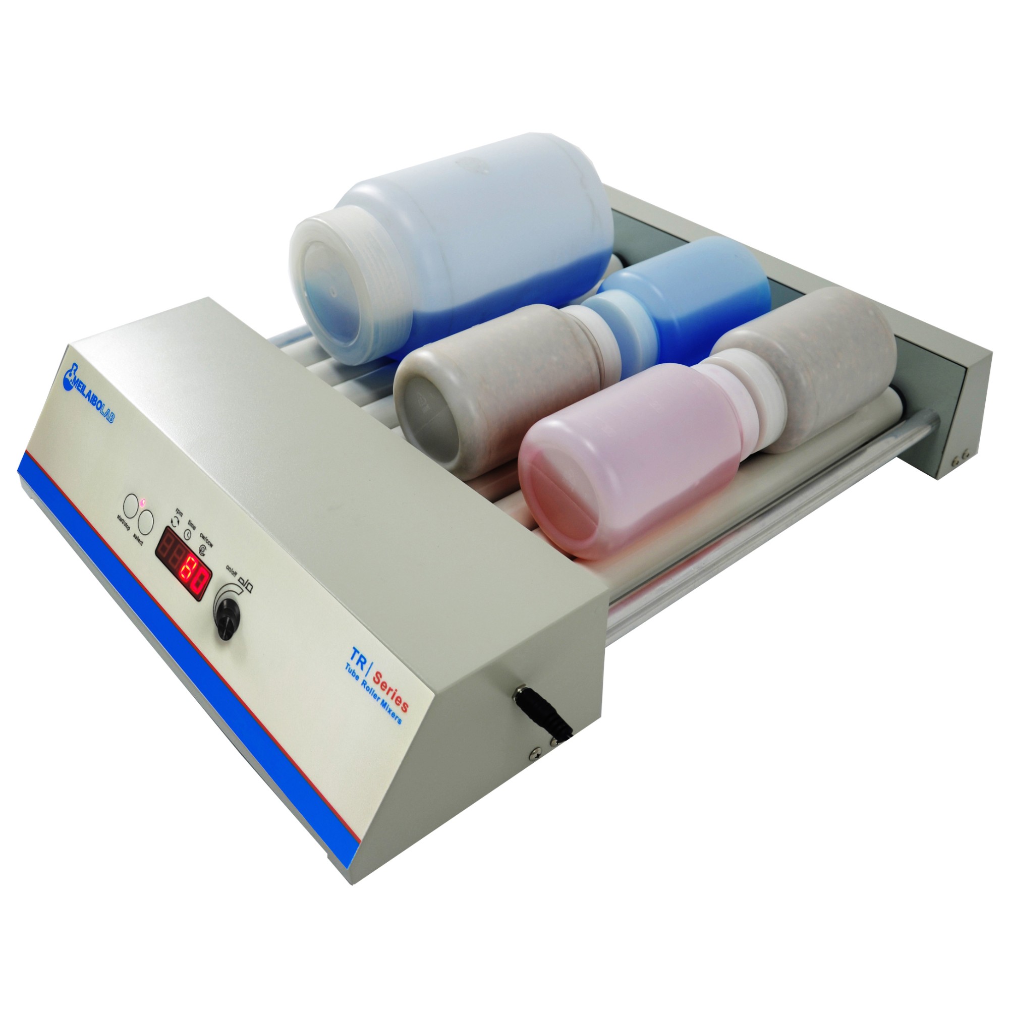 Roller mixer operates by rotating the rollers and cylindrical sample containers in opposite directions,