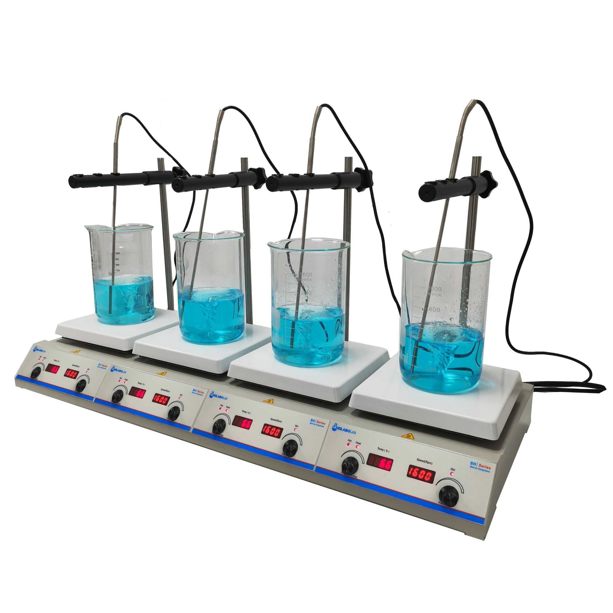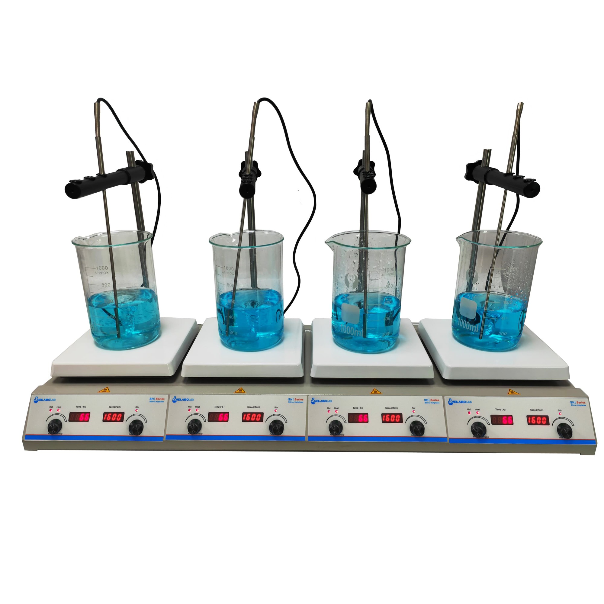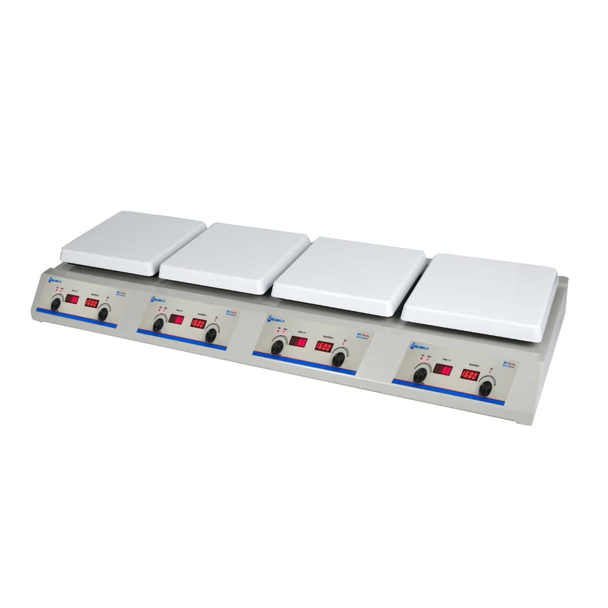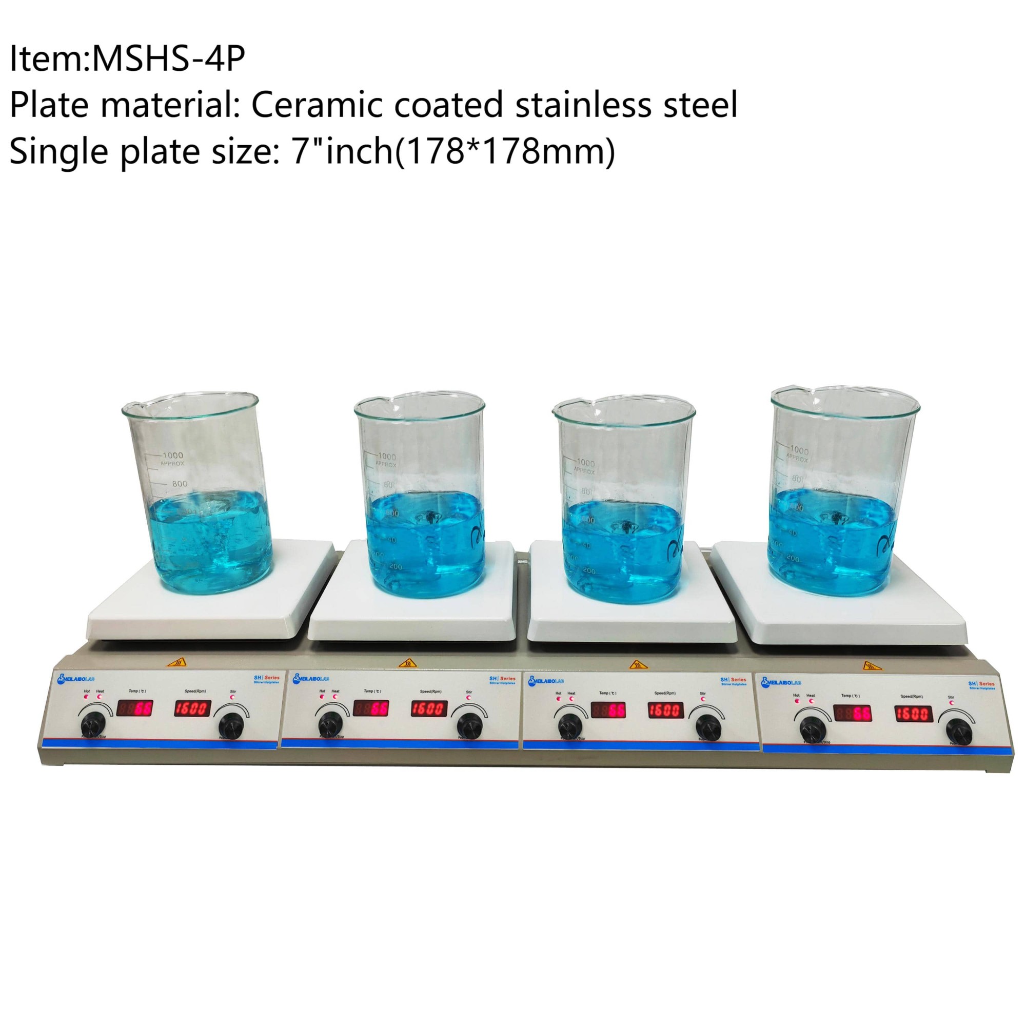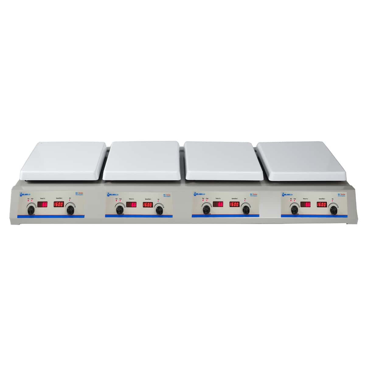 laboratory hotplate stirrer equipped with 4 7-inch ceramic hotplates, ensuring optimal performance, enhanced safety, and maximum reliability for everyday laboratory.
