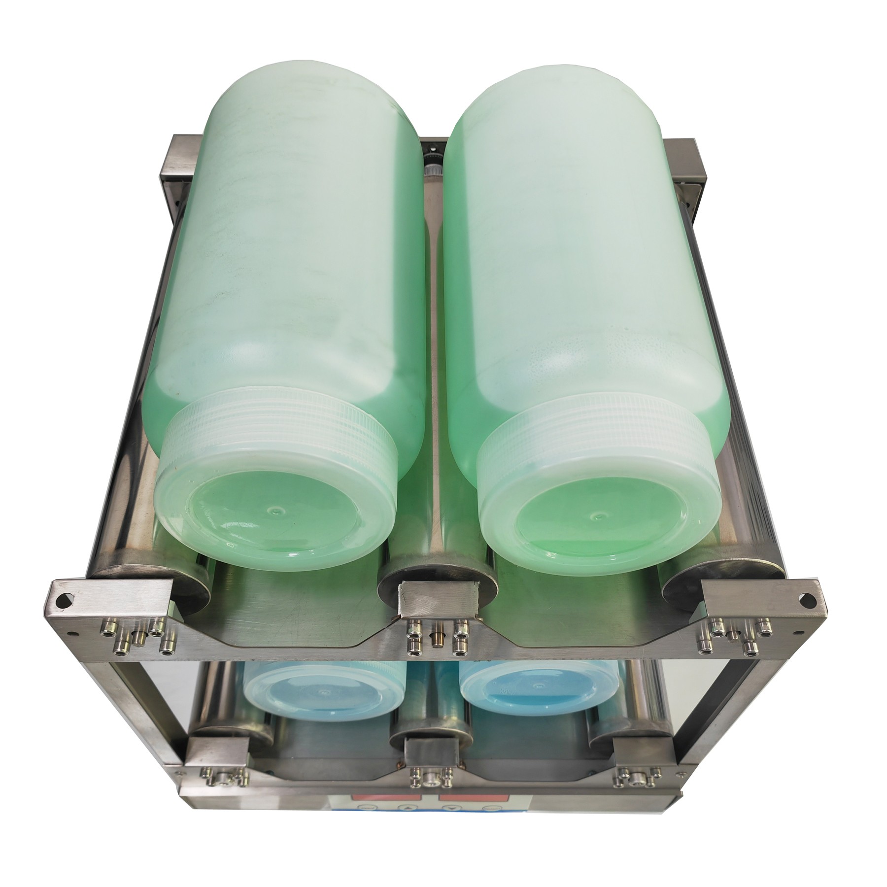 1. The rollers are asymmetrically arranged, allowing more flexible placement of bottles with different diameters