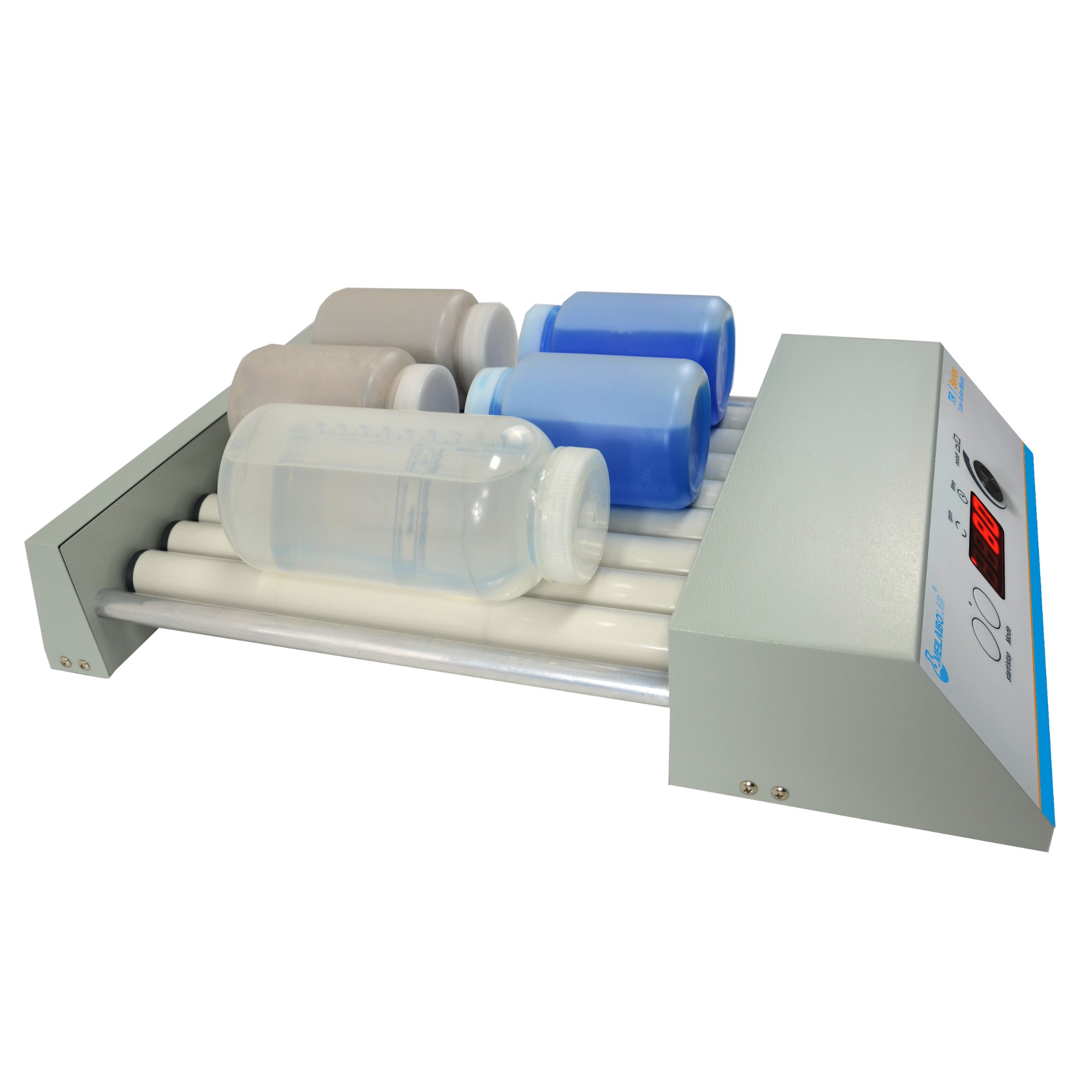 Roller mixer operates by rotating the rollers and cylindrical sample containers in opposite directions,